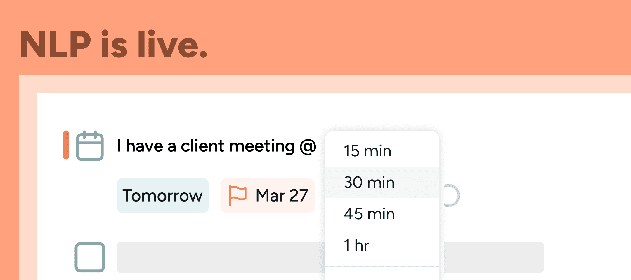 Add tasks naturally with automatic detection of priority, duration, and tags