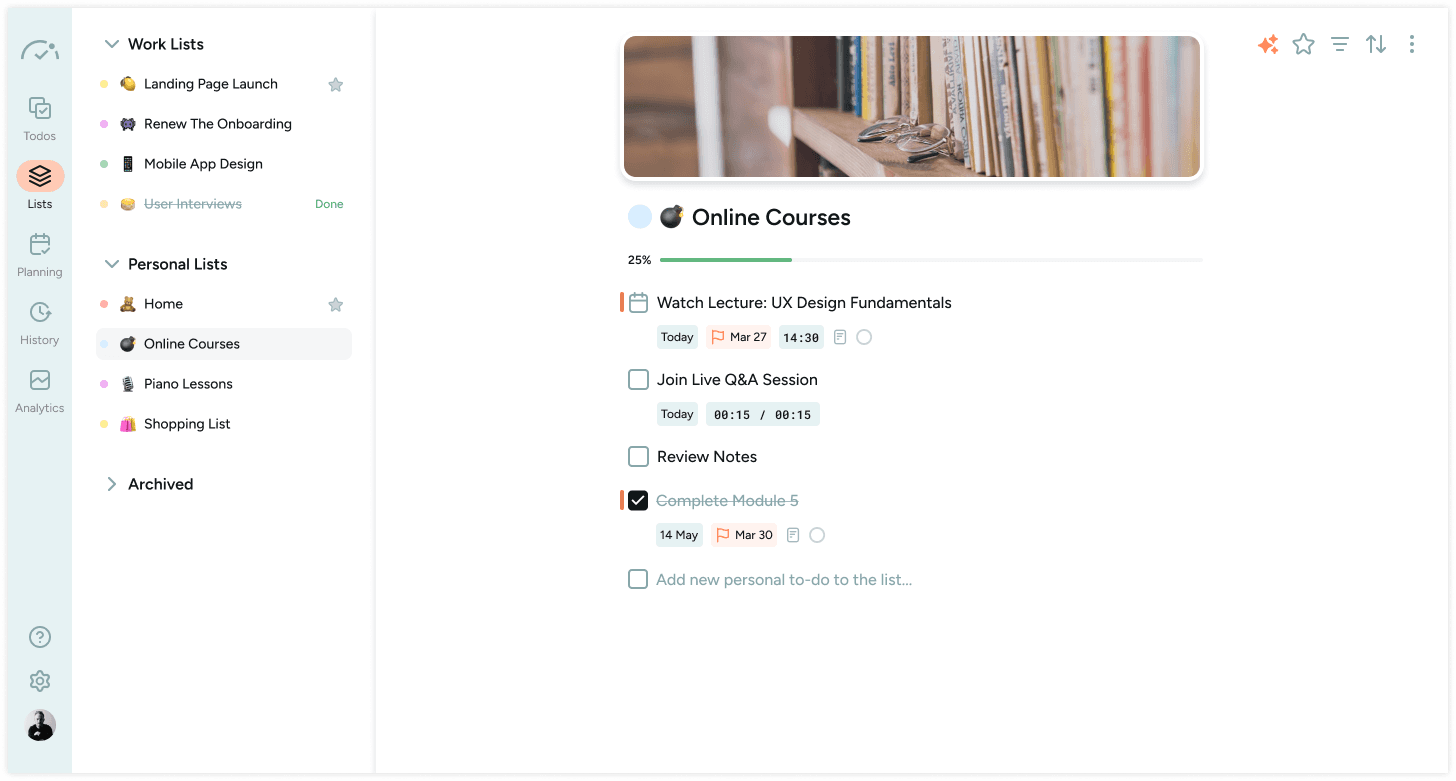 ✅ Track your progress on each list to stay motivated.