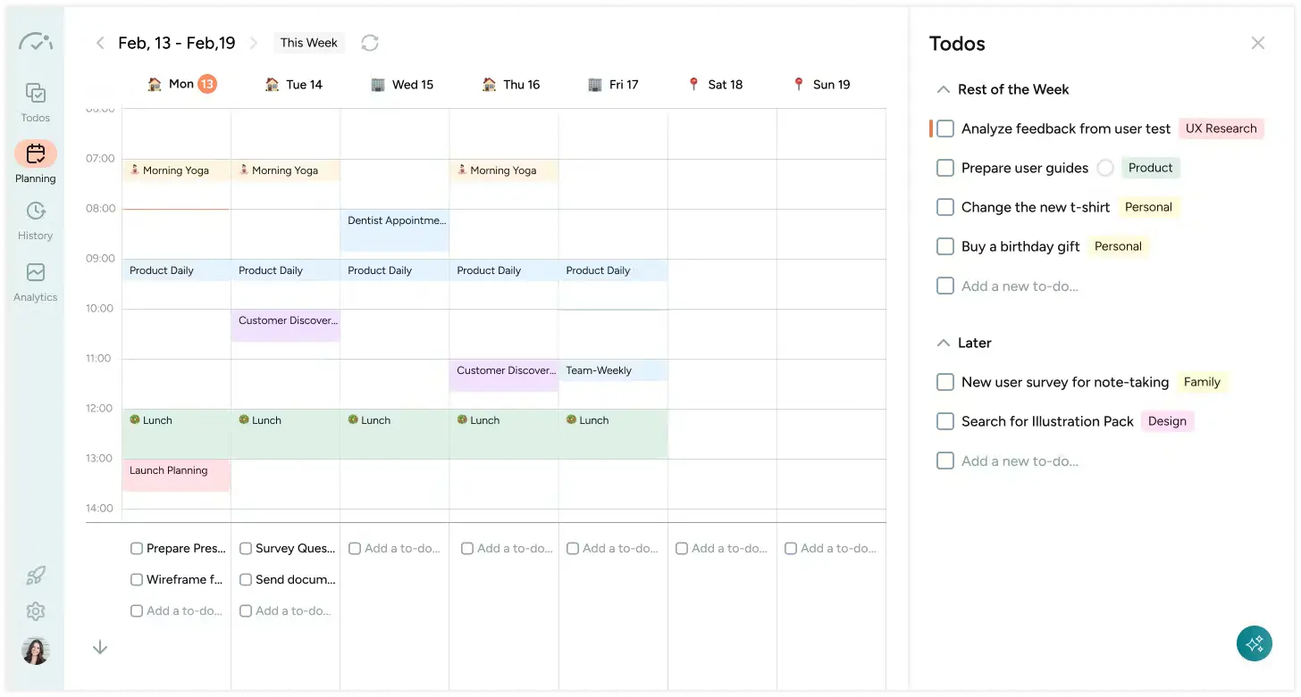 Daily and Weekly Planning: Sunsama’s approach integrates both daily and weekly goals, enabling users to build a schedule that promotes a sense of achievement and focus.