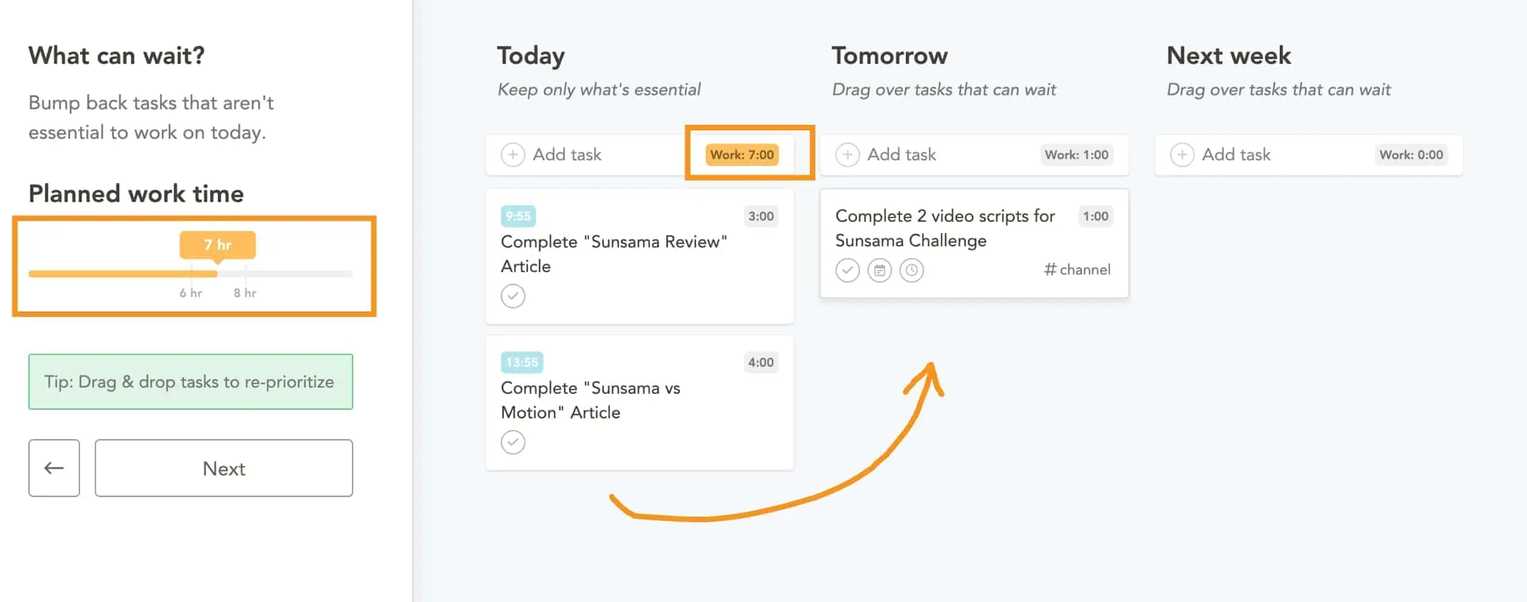 Sunsama: Uses a more holistic approach, helping users manage their workloads in a way that considers well-being.