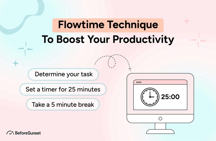 The next step is to use the flowtime technique. This means setting aside a specific amount of time for a task or project, and then working on it until it's finished or until the timer runs out and you need to take a break.