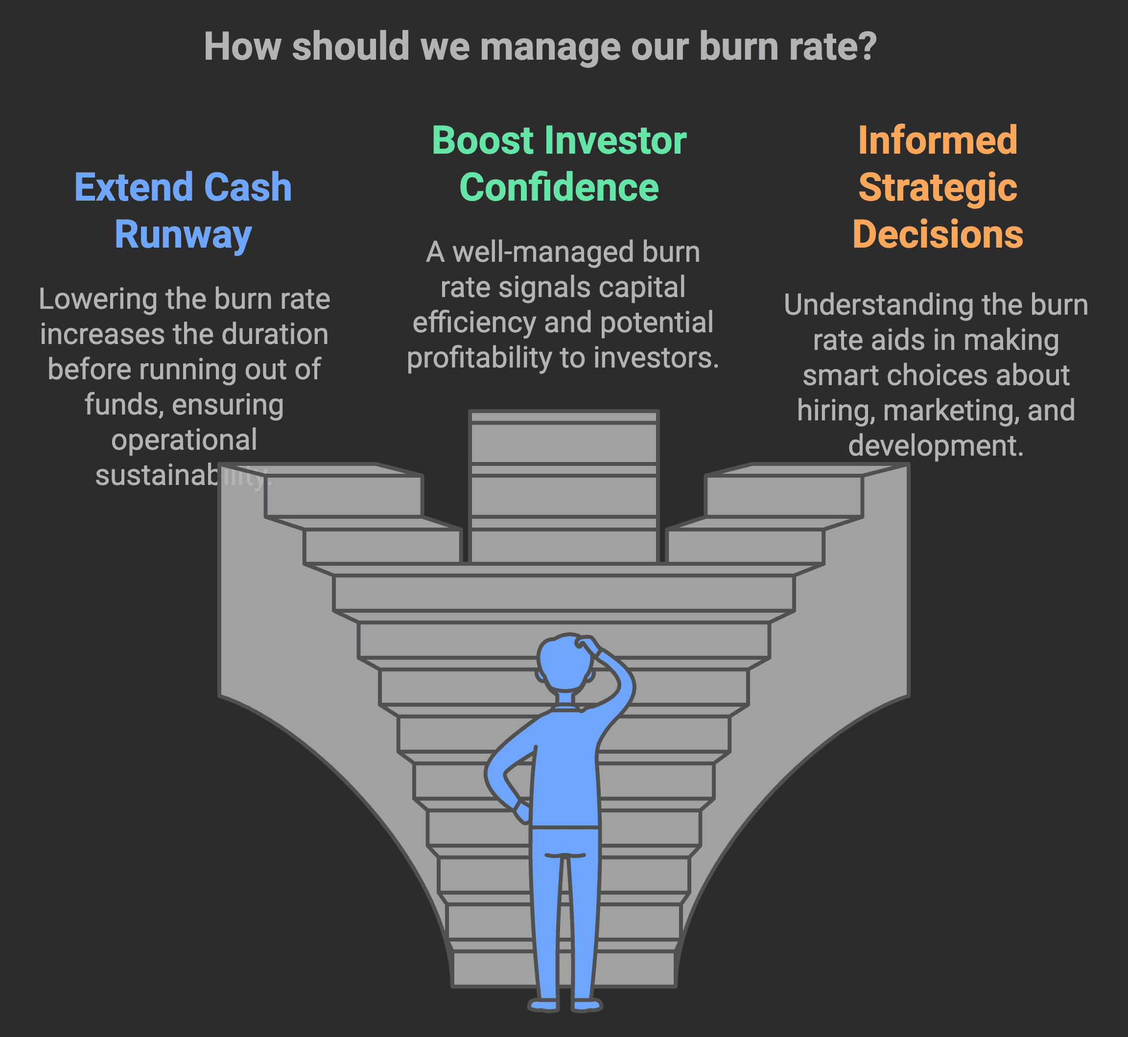Investor Confidence: Investors pay close attention to burn rate as it indicates your startup's capital efficiency and potential for profitability. A well-managed burn rate can be a strong signal of smart financial management.
